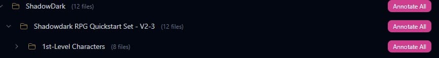 A folder inside this is full of character sheets, I click the matching Annotate All button.